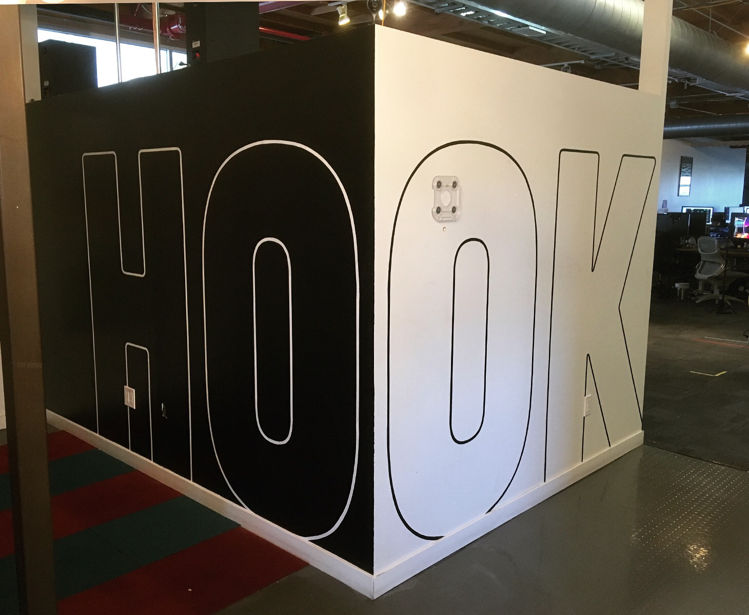 Mikell, a creative director at Hook Studios in Culver City, CA. Commissioned us to paint an outline of the company's logo right at the entrance of the office.