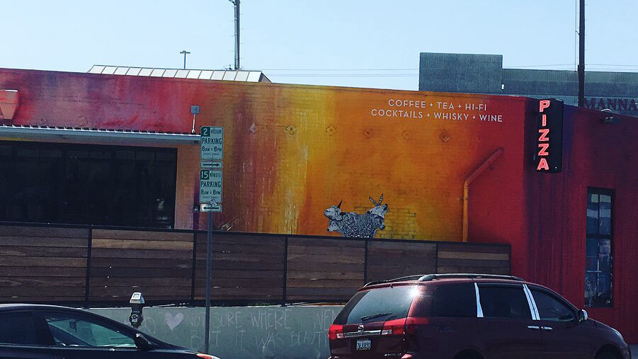 In Sheep's Clothing commissioned us to paint an informational sign on their wonderful multicolored background. Simplicity over a variety of color was the concept to achieve.