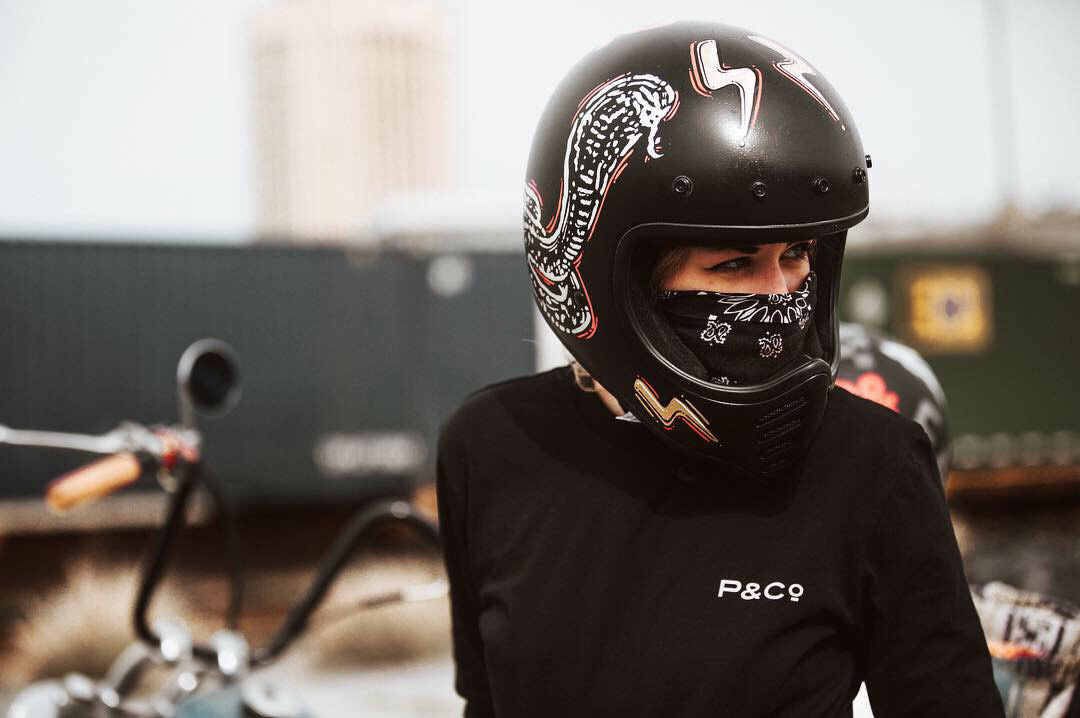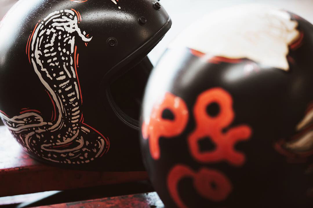 Collection of 3 helmets commissioned by Shitty Helmets for British brand P & Co. 1 helmet was painter regularly & 2 helmets were painted and gold leaf gilded with 23k gold leaf.