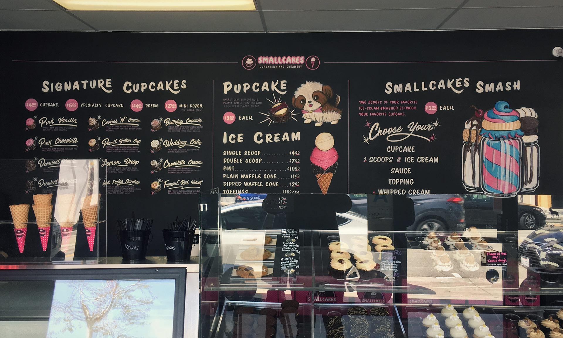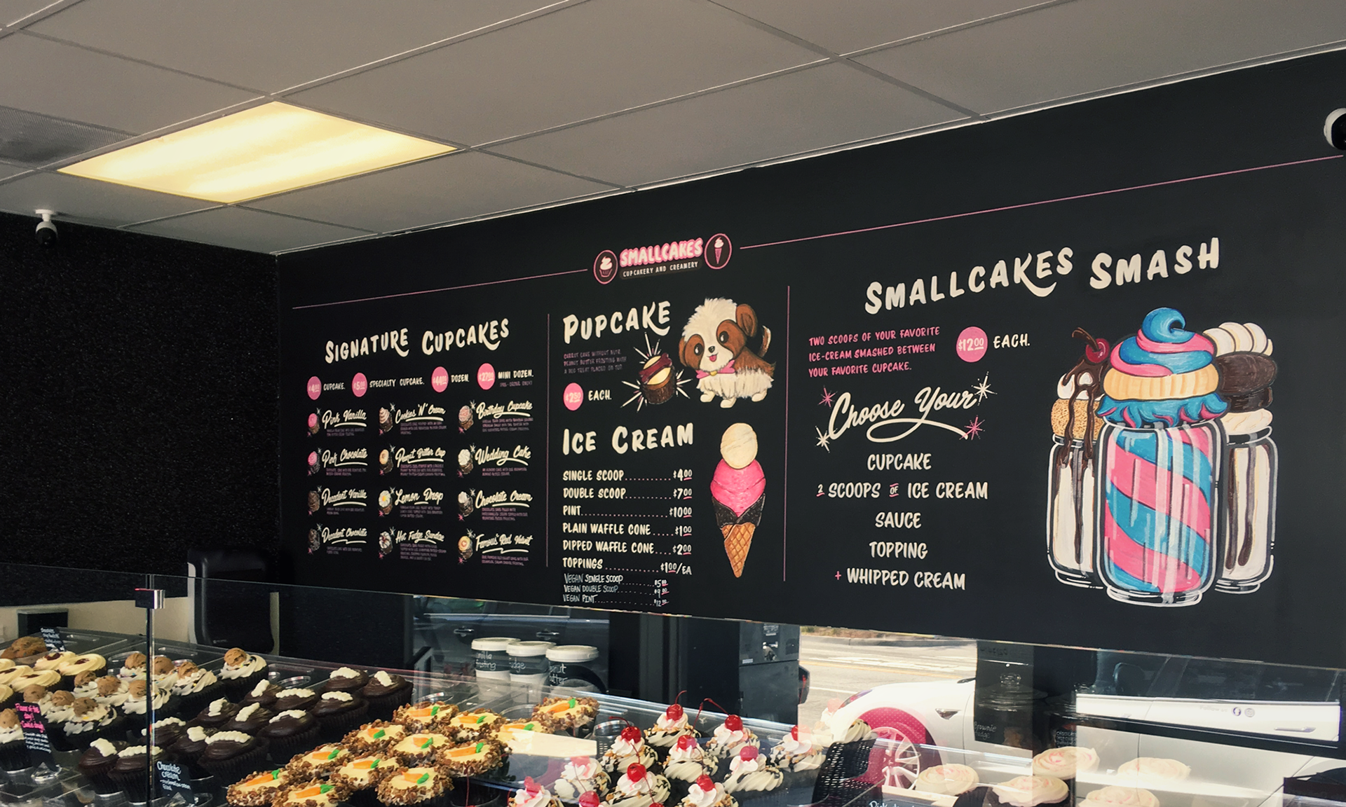 Chalkboard menu and mural designed for Small Cakes in El Segundo, CA.